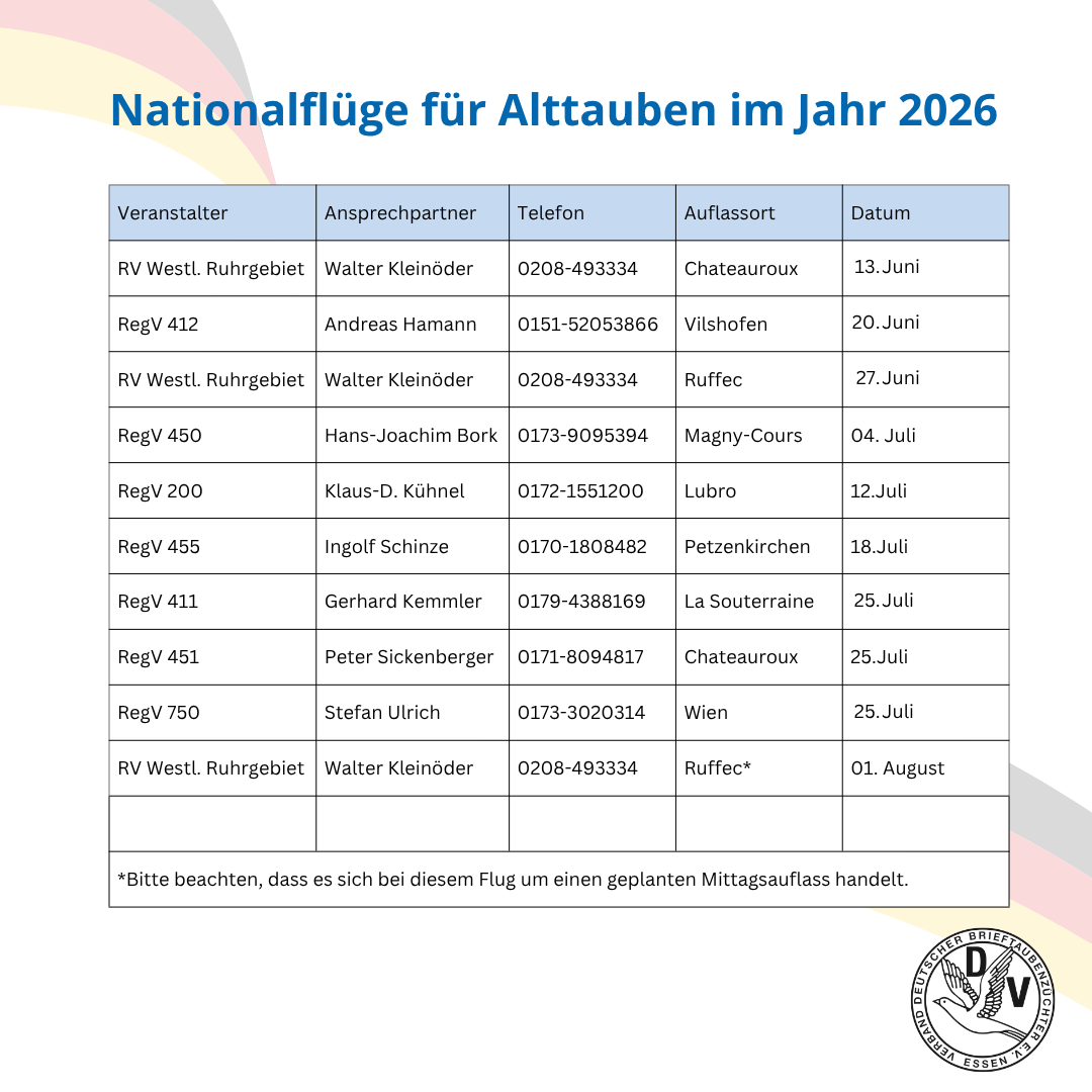Auch im Jahr 2026 hat der Verband in Vertretung durch den Ständigen Sportausschuss wieder Nationalflüge ausgeschrieben.