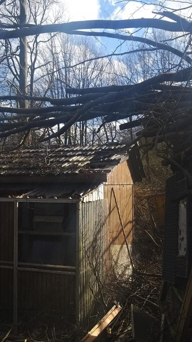 Bei beiden wurden große Teile ihrer Taubenschläge durch umgestürzte Bäume im Zuge des Sturmtiefs zerstört, wie Sie im Folgenden sehen können. Das Schlimmste, nämlich dass einige Tauben leider nicht mehr gerettet werden konnten, kann leider niemand ändern. Dass die Tauben, die dieses Unglück überlebt haben, aber schnell eine neue Heimat bekommen, schon.