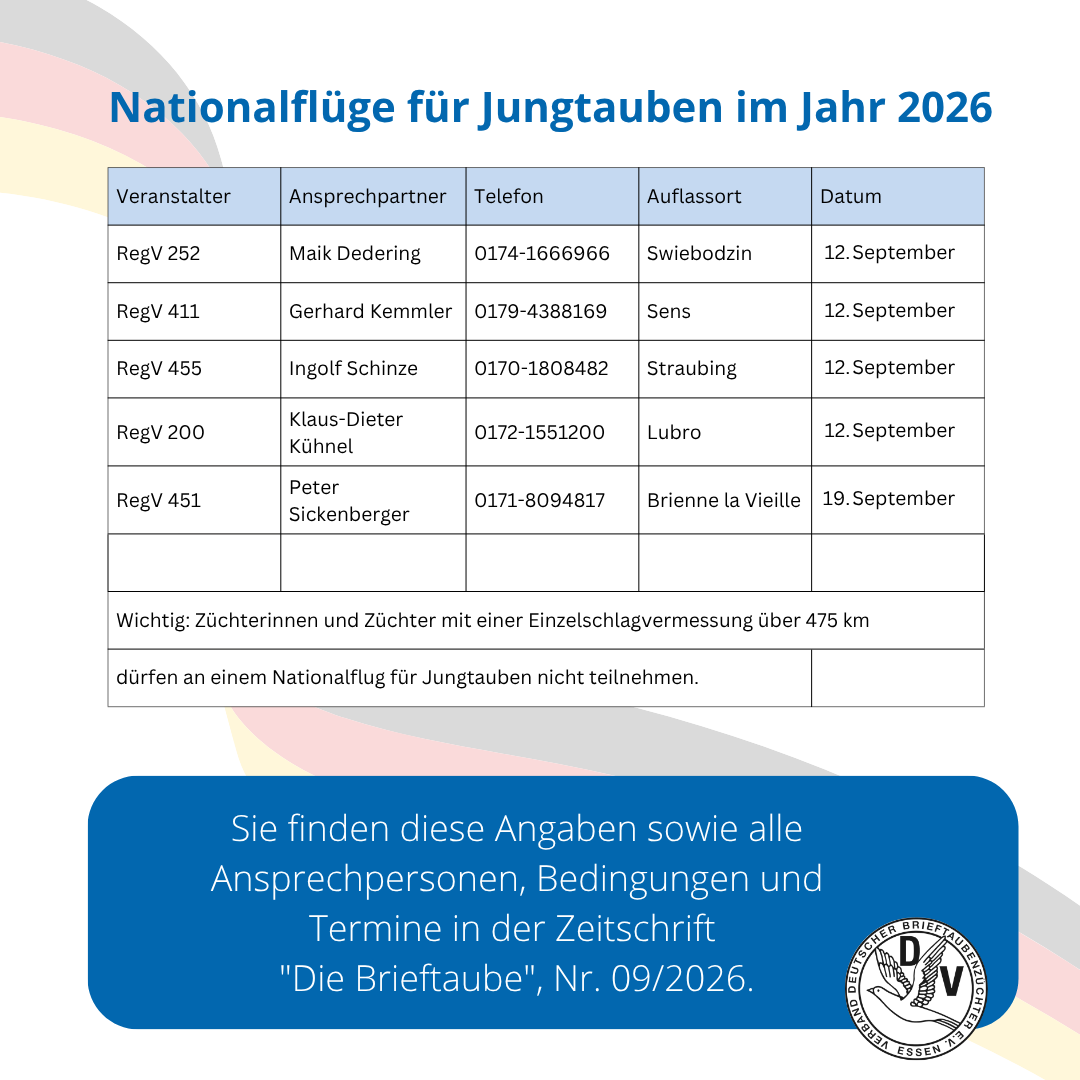 Wir wünschen allen Teilnehmern schon jetzt viel Erfolg und drücken Ihnen die Daumen für eine erfolgreiche Teilnahme an den diesjährigen Nationalflügen.
